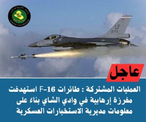 العمليات المشتركة : طائرات F-16 استهدفت مفرزة إرهابية في وادي الشاي بناءً على معلومات مديرية الاستخبارات العسكرية