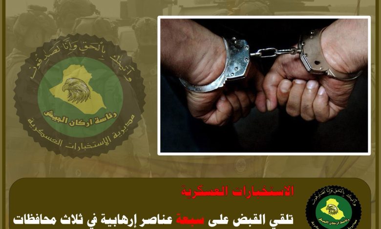 الاستخبارات العسكرية تلقي القبض على سبعة عناصر إرهابية في ثلاث محافظات