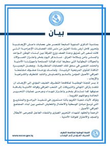 إذ يسر للجنة الوطنية لمكافحة التطرف العنيف المؤدي إلى الإرهاب أن تتقدم بأزكى التهاني والتبريكات إلى الشعب العراقي وقواته الأمنية بكافة صنوفها كما نستذكر بفخر واعتزاز شهداء وجرحى عمليات التحرير الخالدة وعوائلهم الكريمة .