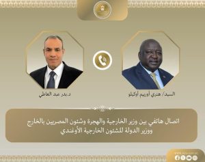 أجرى د. بدر عبد العاطي وزير الخارجية والهجرة، اتصالًا هاتفيًا مع السيد “هنري أورييم أوكيلو” وزير الدولة للشئون الخارجية في أوغندا، وذلك في إطار التنسيق والتشاور المستمر بين البلدين الشقيقين حول مختلف القضايا ذات الاهتمام المشترك.