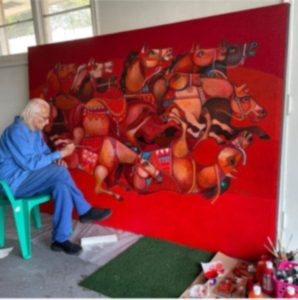 – كما توجد لدي جدارية مهمة كنت اعتز بها من النحت البارز من البرونز في أحد القصور الرئاسية.