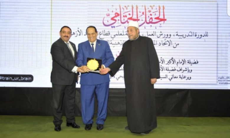 أشار إلى أن الحفل تضمن تكريم المشاركين الذين أكملوا الدورة بنجاح، مع عرض لأبرز ثمار التعاون بين الاتحاد المصري للتنمية الذهنية وقطاع المعاهد الأزهرية، مؤكدًا أن هذه الجهود تسهم في تمكين المعلمين من نقل مهاراتهم إلى الطلاب لبناء بيئة تعليمية تحفز على الإبداع والمنافسة الإيجابية.