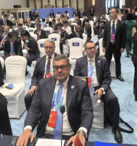 رئس الوفد المصرى السفير أبو بكر حفنى محمود نائب وزير الخارجية بمشاركة علاء البيلى وزير مفوض تجارى لشئون الترويج للاستثمار بوزارة الاستثمار والتجارة الخارجية والسفير خالد نظمى سفير مصر لدى الصين ، بحضور الكاتب الصحفى أيمن عامر وكيل الشئون الأفريقية والعربية بنقابة الصحفيين المصرية .