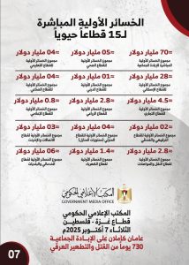 🔸(70) مليار دولار مجموع الخسائر الأولية المباشرة للإبادة الجماعية.
