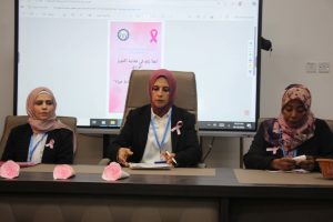 بمناسبة فعاليات اليوم الوردي تم إقامة هذه جلسة للحديث عن نجاح فعاليات اكتوبر الوردي من جميع جوانبها النفسية و الجراحية والتغذية بإشراف وتنظيم عضوات لجنة تطوير المرأة