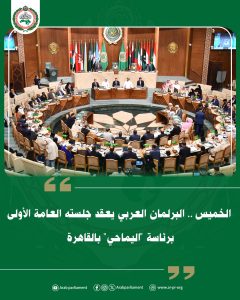 *الخميس .. البرلمان العربي يعقد جلسته العامة الأولى برئاسة “اليماحي” بالقاهرة لبحث القضايا العربية وعلى رأسها القضية الفلسطينية*