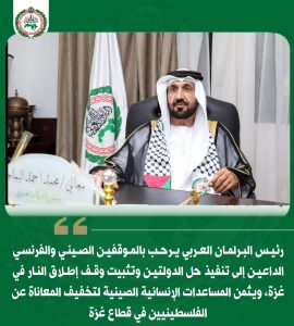 رئيس البرلمان العربي يرحب بالموقفين الصيني والفرنسي الداعين إلى تنفيذ حل الدولتين