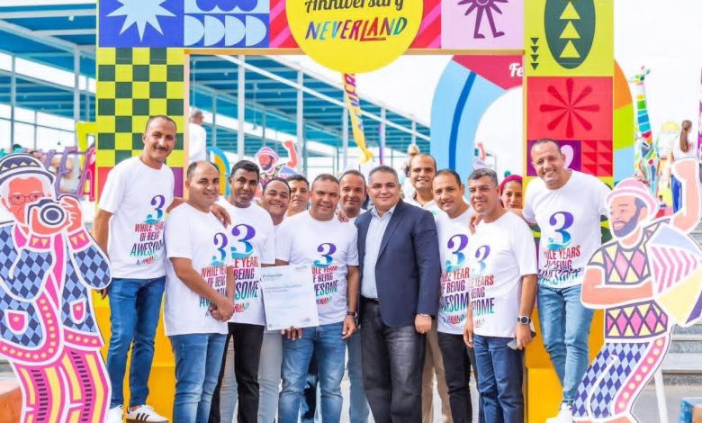 شهدت مدينة «نيفرلاند» الترفيهية بالغردقة احتفالية خاصة خلال عيد ميلادها الثالث، خصصتها لتكريم صناع النجاح الحقيقيين خلف هذا المشروع السياحي الضخم، حيث احتفت إدارة المدينة بجميع الكوادر المهنية والفنية والخدمية التي تعمل داخل المنظومة بروح فريق واحد جعل من نيفرلاند إحدى أهم الوجهات الترفيهية في الشرق الأوسط.