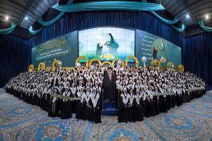 تشهد فعاليات اليوم الأول من حفل التكليف المركزي الثامن، التقاط المتولي الشرعي للعتبة العباسية المقدسة سماحة العلامة السيد أحمد الصافي صورة تذكارية مع التلميذات.